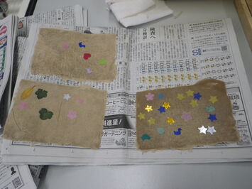 花びらに切り抜いた色紙をのせて、カラフルで素敵な紙が完成しました!!